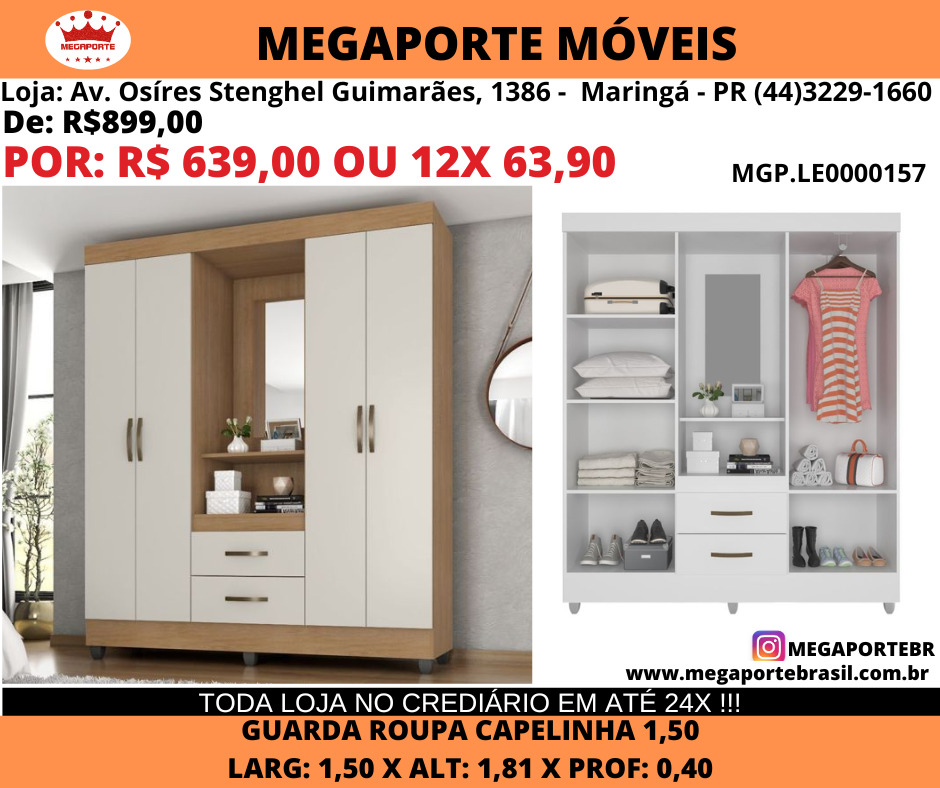 Guarda Roupa Solteiro 1,50M 6p 2g